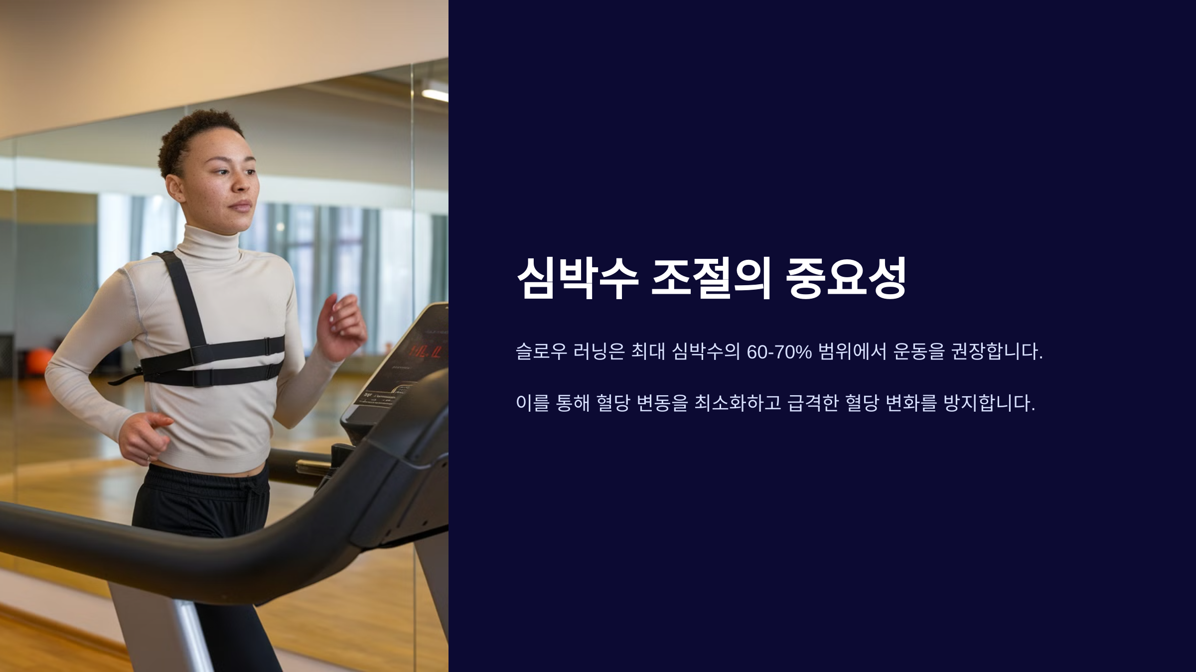 슬로우 러닝은 보통 최대 심박수의 60-70% 수준에서 실시합니다. 이는 대체로 120-130 bpm에 해당하며, 혈당 변화를 최소화하고 안정적인 운동을 할 수 있게 해줍니다. 혈당이 급격히 오르거나 떨어지는 것을 방지하기 때문에 당뇨병 환자에게 안전한 운동 방식으로 평가됩니다.