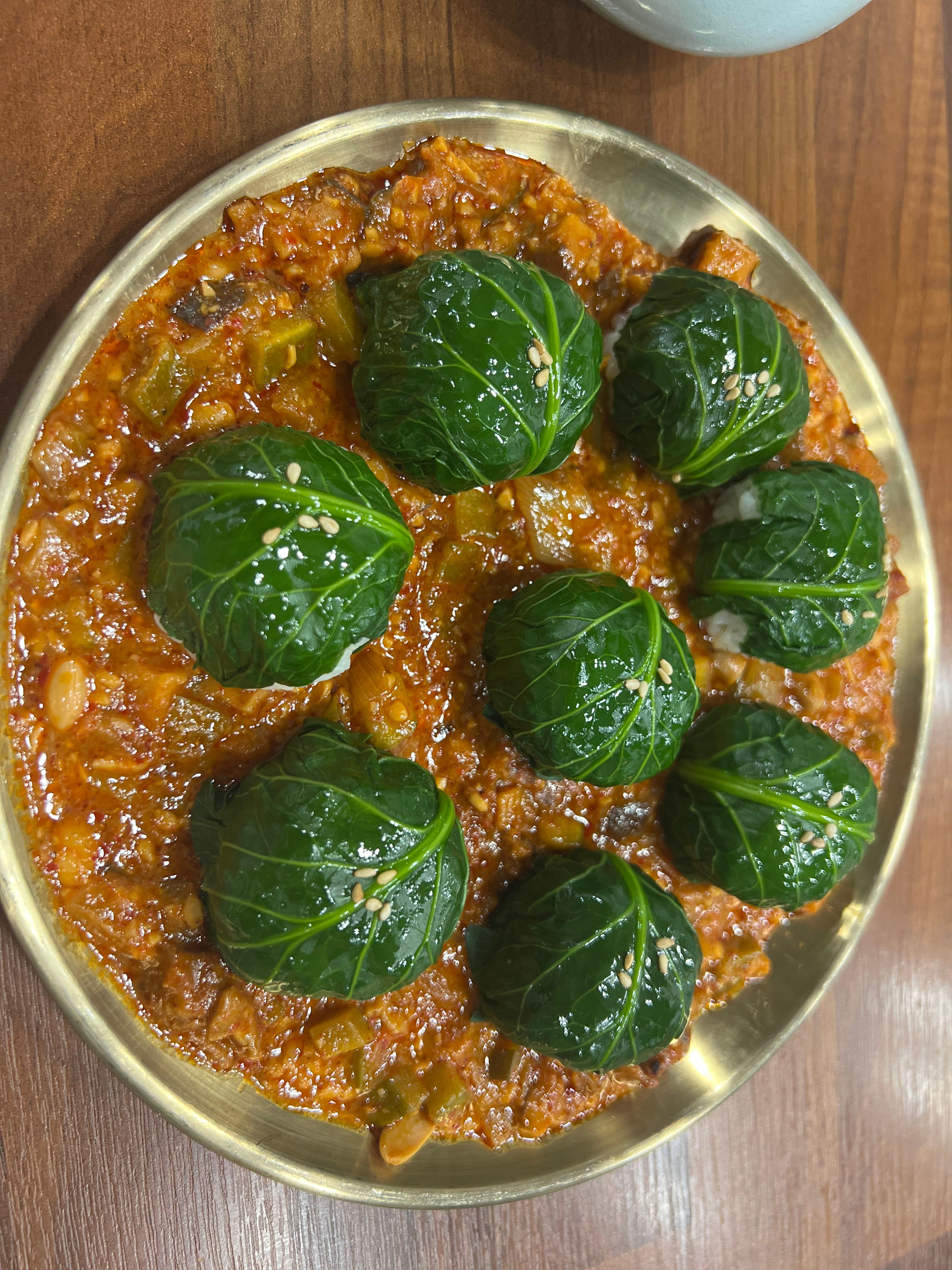 한남동칼국수에서는 칼국수뿐만 아니라 강된장 쌈밥도 인기 메뉴입니다. 된장은 마치 집에서 직접 담근 것처럼 구수하고 깊은 맛이 나서 밥과 함께 먹기에 딱 좋습니다. 짜지 않으면서도 감칠맛이 살아 있는 된장 덕분에, 쌈밥을 좋아하는 분들에게도 강력 추천합니다.
