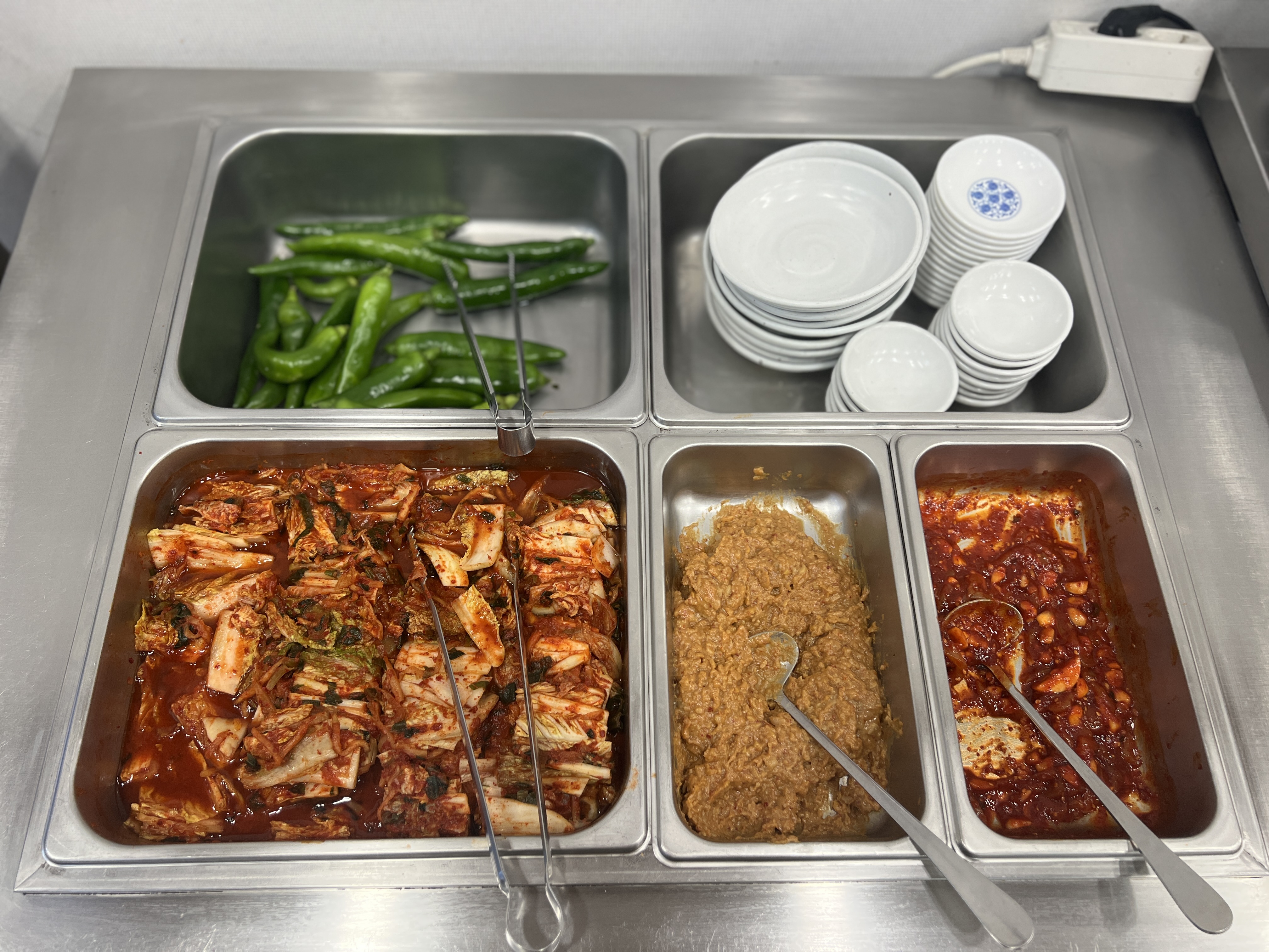 칼국수를 먹을 때 곁들여지는 반찬도 중요하죠. 김치는 깔끔하고 개운한 맛이 특징이며, 과하지 않은 양념 덕분에 칼국수와 조화롭게 어우러집니다. 특히, 고추도 리필 가능해서 매운맛을 더하고 싶은 분들에게는 아주 좋은 점입니다.