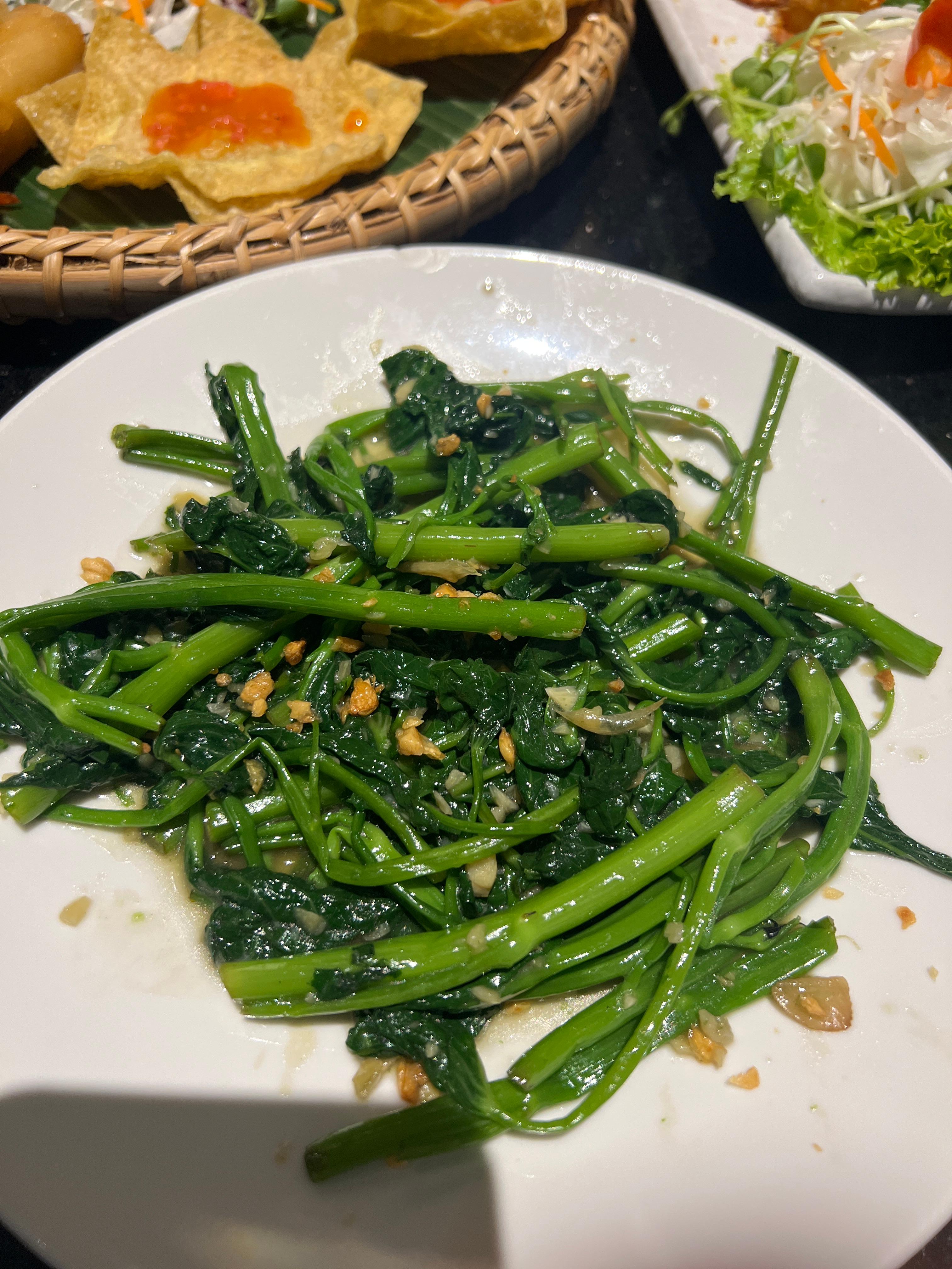 줄기 속이 비어 있어 가볍고, 열대성 식물이라 무더운 날씨에서 잘 자란다. 그래서 베트남이나 태국에선 거의 매일 먹는 채소라고 해도 과언이 아니다. 맛은 담백하면서도 시원하고, 식감은 부드럽지만 아삭하다. 마늘, 피시소스, 고추와 만나면 그야말로 밥도둑.