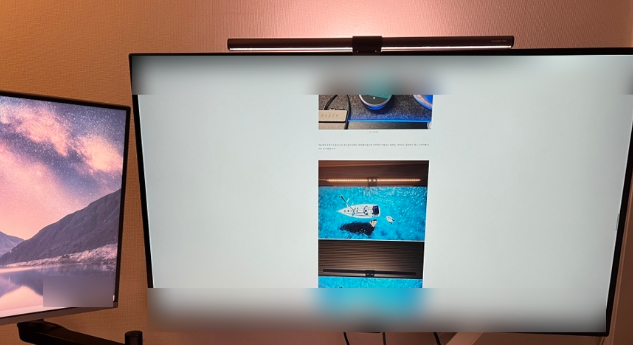 불과 3일 정도 사용했을 뿐인데도, 빛의 질감에서 확실히 차이를 느꼈습니다. 밝기 자체가 고르게 퍼지고 눈부심이 덜해서 장시간 사용 시에도 피로감이 적습니다. 특히 커브드 모니터를 지원하는 각도 조절 장치가 포함된 점은 매우 만족스러웠습니다. 일반 조명바는 곡면 모니터에 맞추기 어려운데, 벤큐는 이 문제를 깔끔하게 해결했습니다.