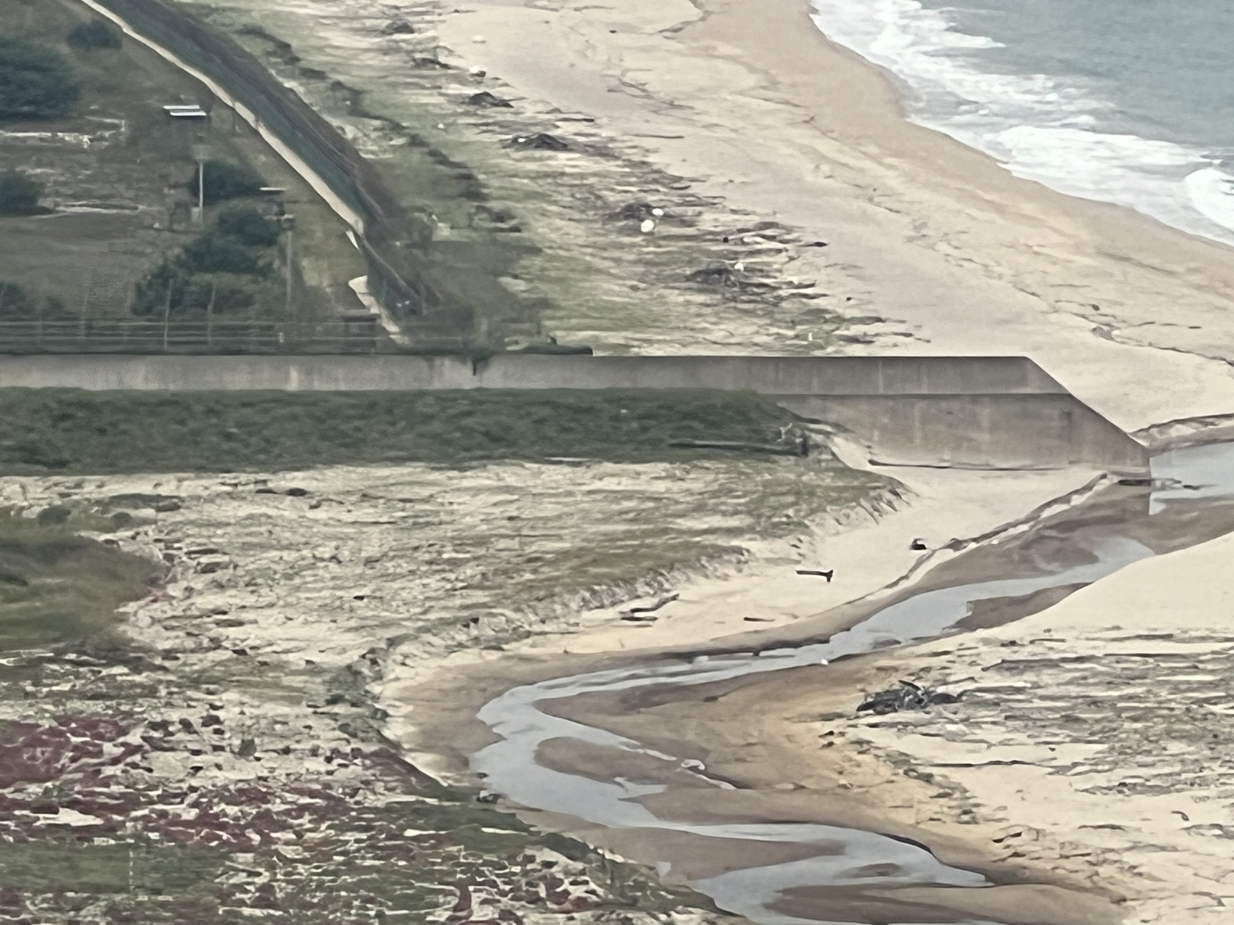 한쪽엔 철조망이 있고, 다른 한쪽엔 푸른 바다가 있습니다.