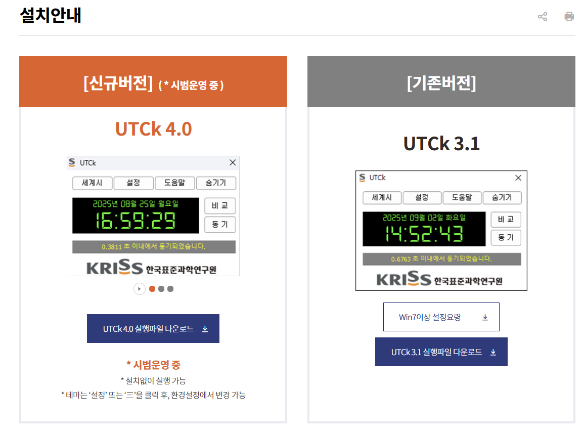 UTCk 4.0은 공식 국가 표준시 서버와 직접 통신하기 때문에
